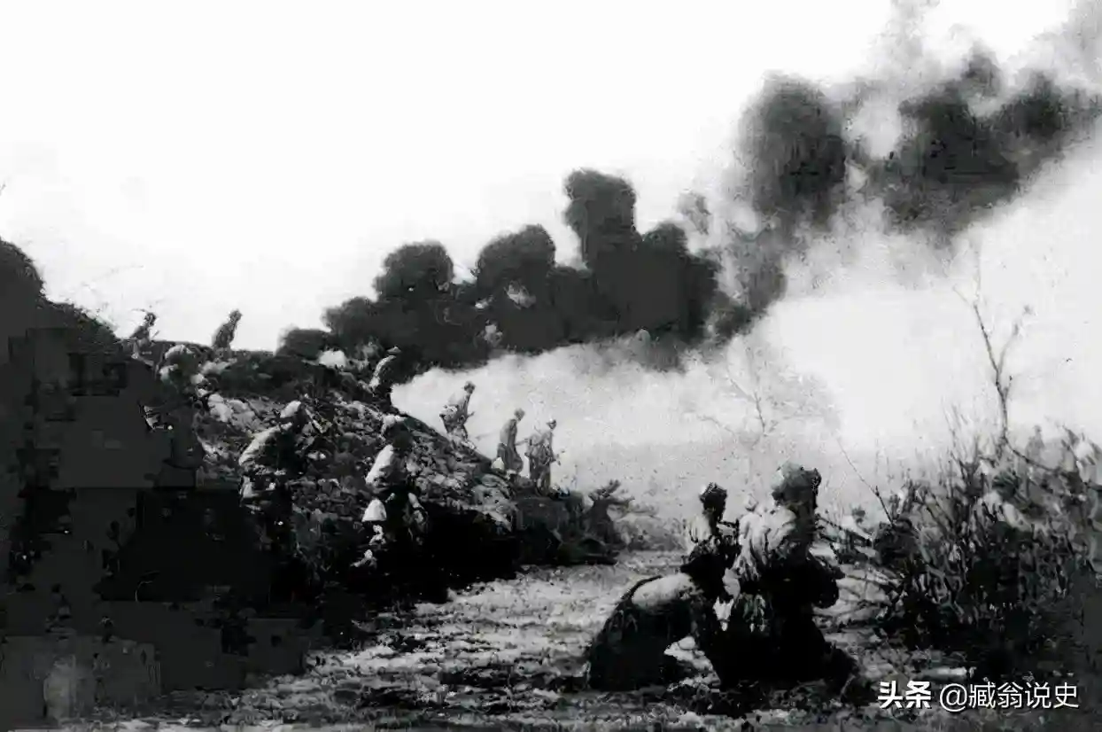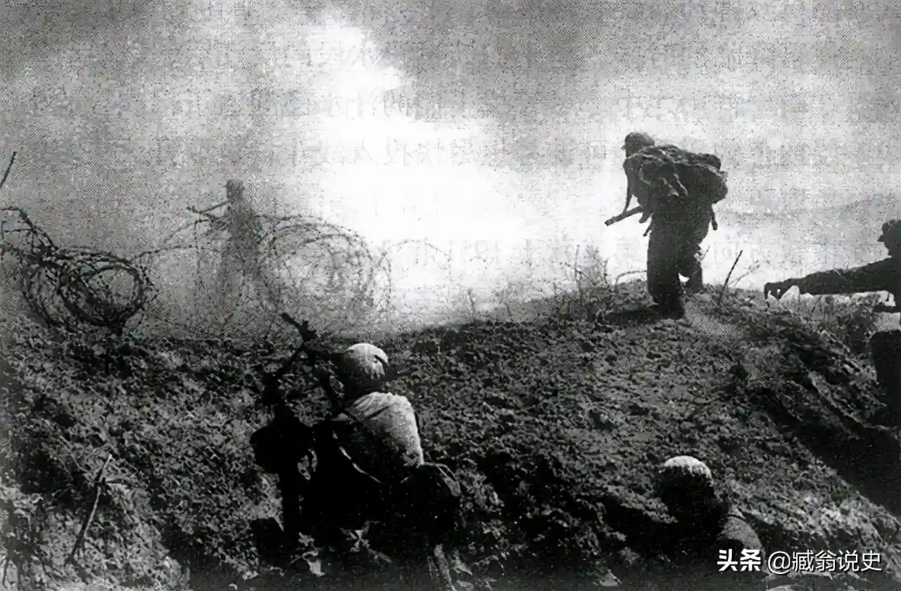 志愿军第50军官兵在朝鲜战场上对敌发起攻击作战的情景