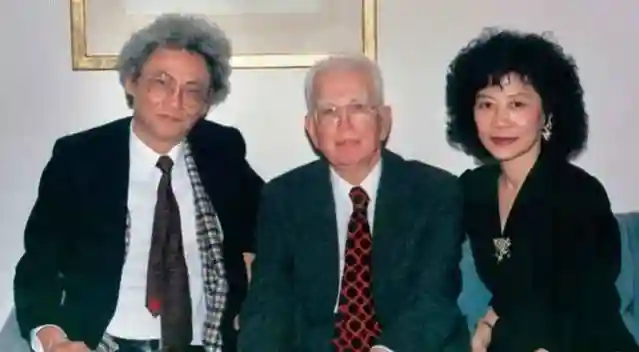 1991年12月,张五常夫妇赴斯德哥尔摩参加科斯教授的诺贝尔奖颁奖典礼。照片为科斯与张五常夫妇合影。