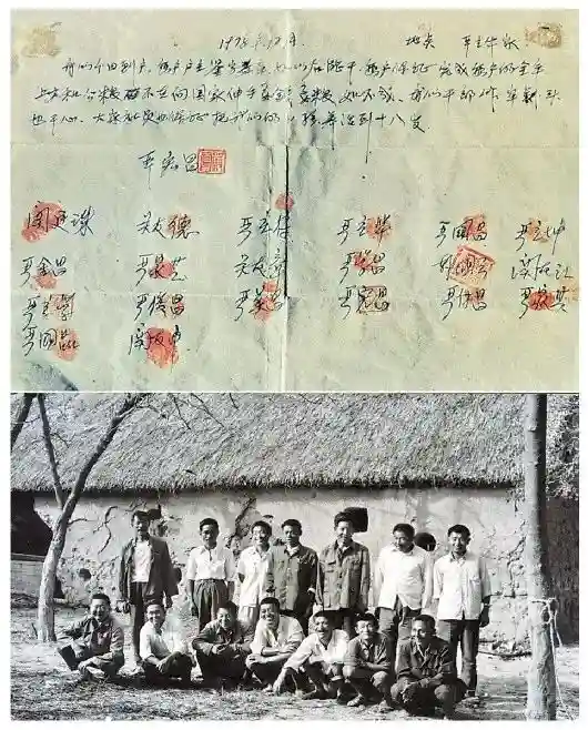 家庭联产承包责任制没有立即明确土地的所有权,而是将土地的使用权承包给农户,让他们自主经营,保留部分产出。图为18位农民按下红手印的“大包干”契约,图片来自新华社。