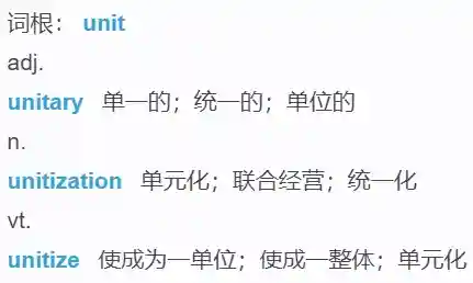 uni(one)+t→单位;单元