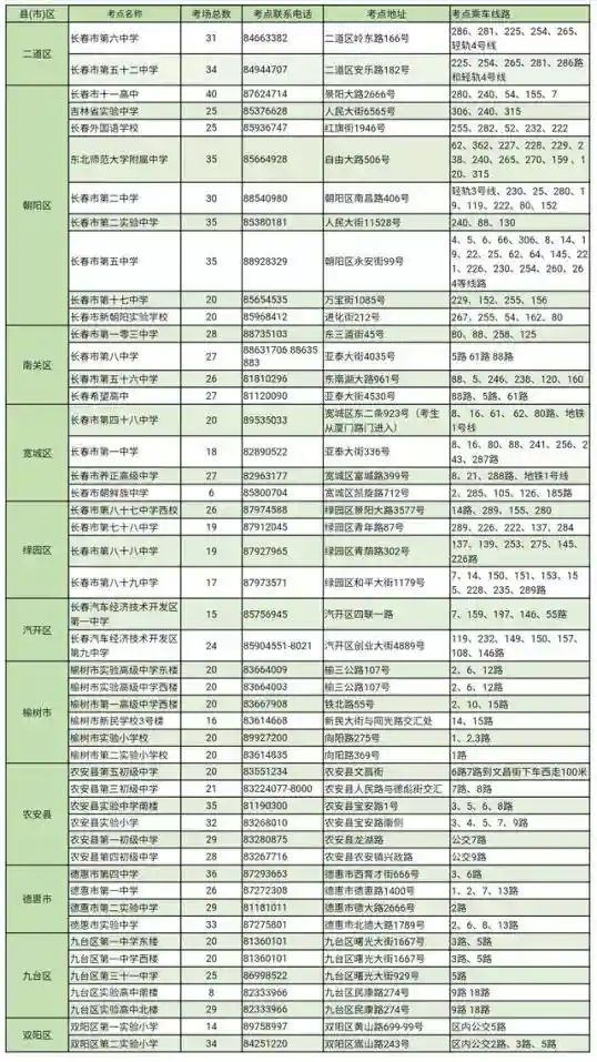 名人数47920人,其中城区24777人,三县(市)双阳区、九台区23143人,全市共设11个考区,48个考点,1184个考场。其中城区设置6个考区,25个考点,629个考场;三县(市)双阳区、九台区设置5个考区,23个考点,555个考场。