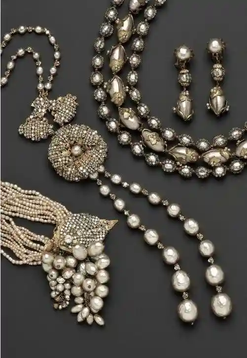 仿珍珠仿珍珠一般是树脂或者琉璃珠,然后在镀上珍珠质感的镀层,形成天然珍珠的效果。它的质感取决于镀层的纯度和层数。相信喜欢中古的小伙伴都知道MiriamHaskell,它最为出名的就是它的琉璃珍珠巴洛克珍珠。