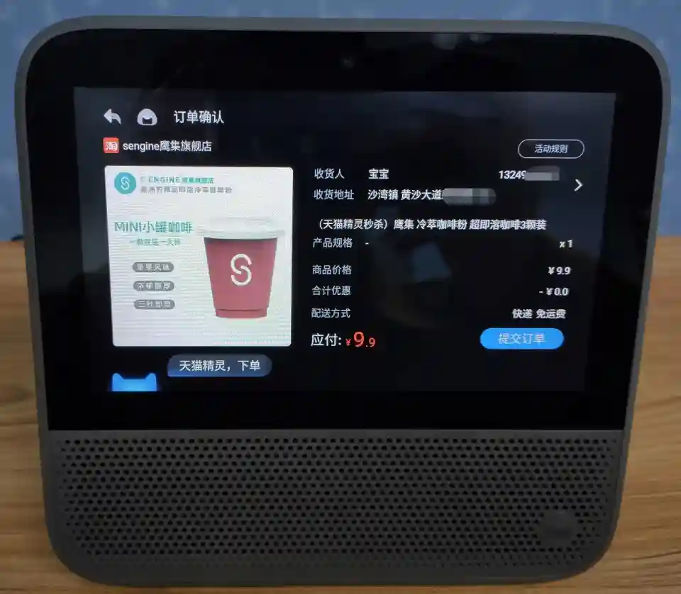 天猫精灵即会把你购买,进入到下单界面。