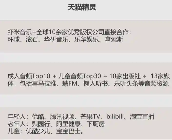 因为天猫精灵和儿童音频Top30机构+10家出版社+13家媒体+宝宝巴士等应用合作。