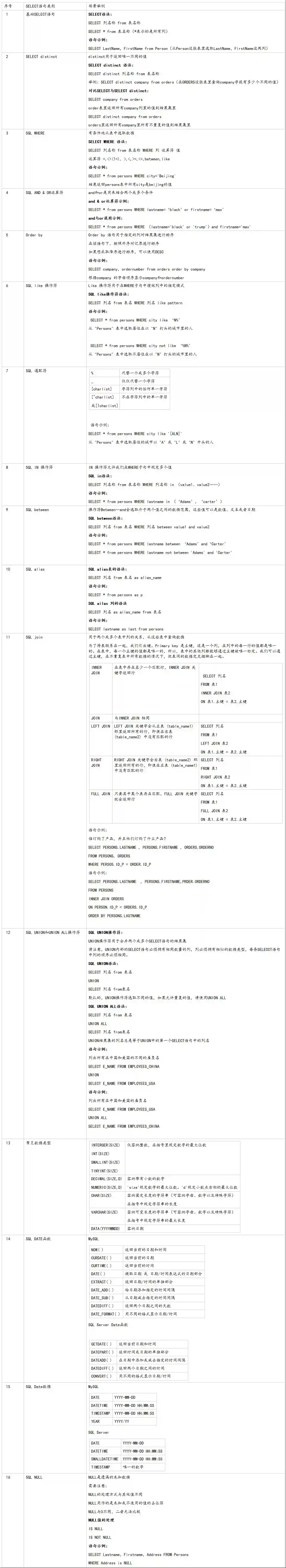 产品经理常用的SELECT语句如下: