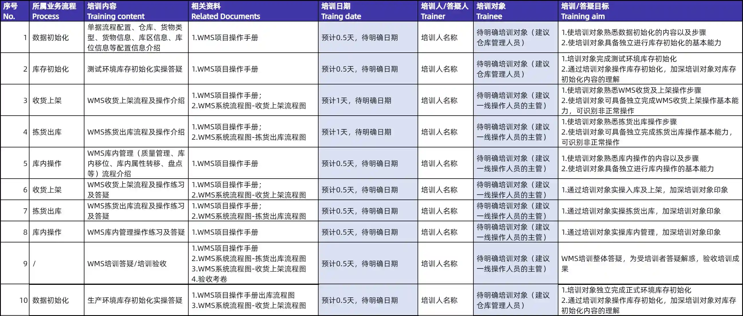表格26某WMS项目培训计划