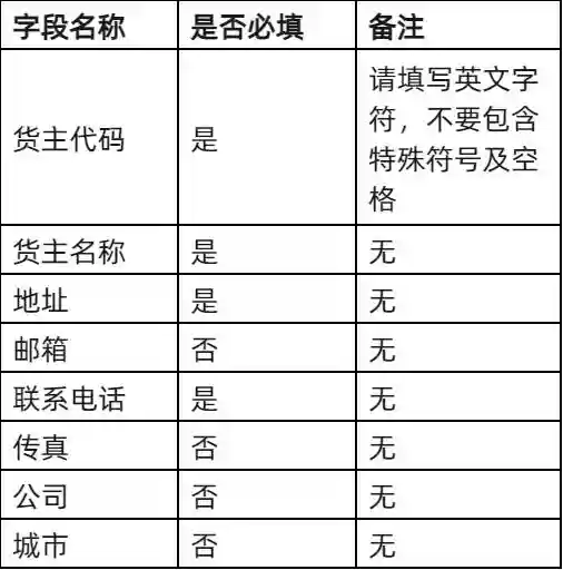 货主数据字典: