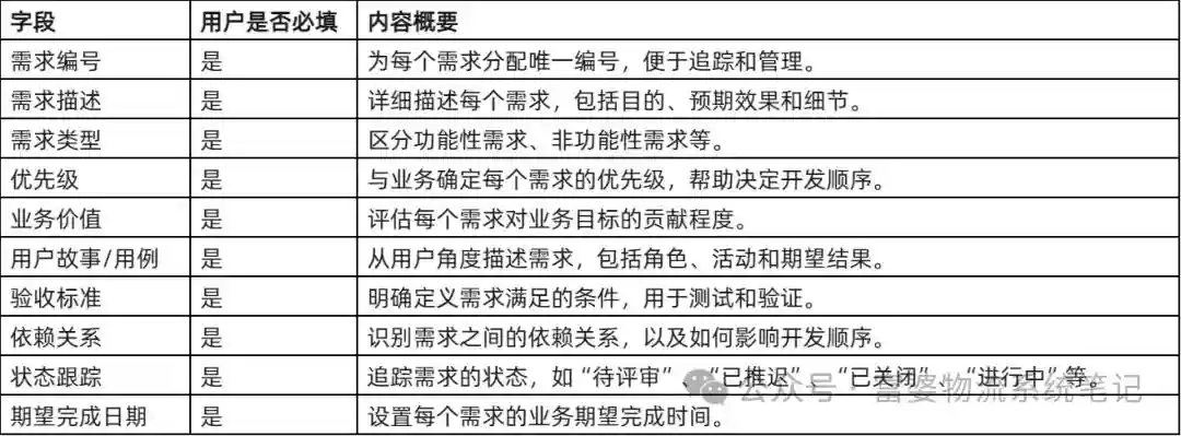 可以套用4.1的需求清单,请关键用户提前维护其需求,必填字段如下: