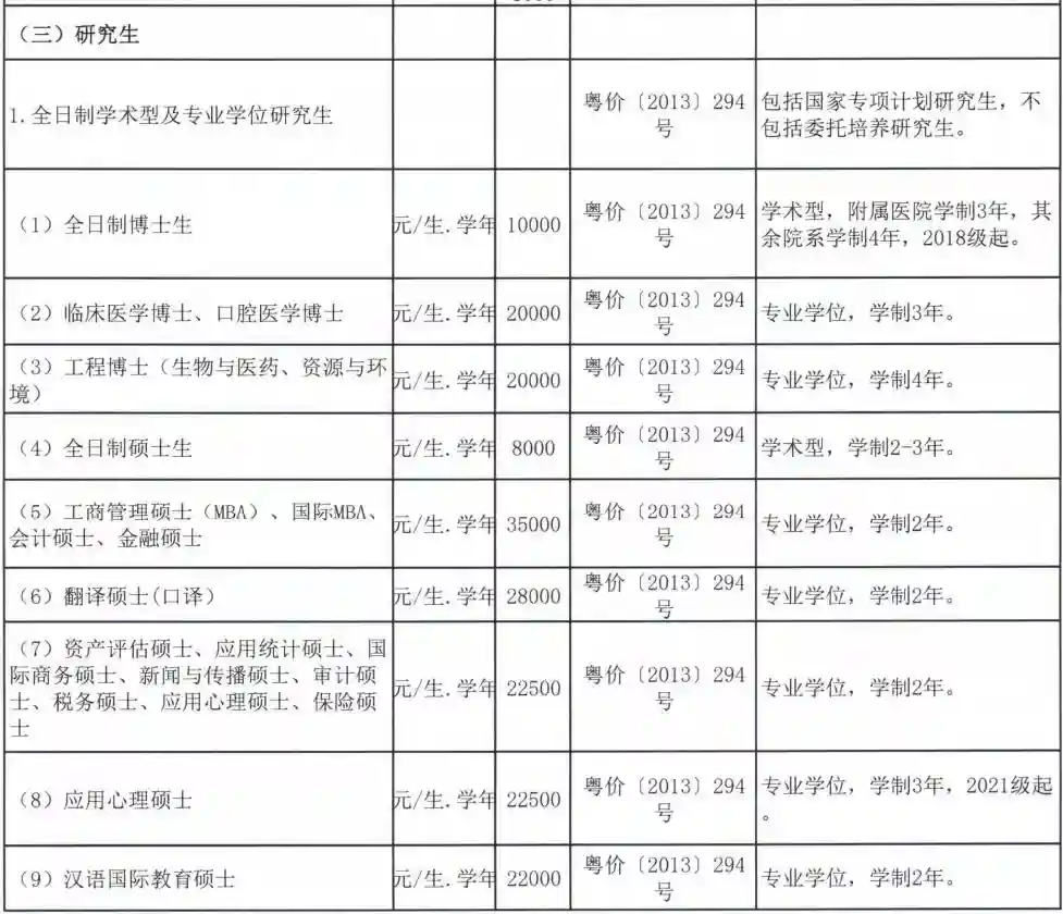 (2)专业型硕士:教育硕士8000.00元/生•学年;电子信息硕士7000.00元/生•学年;会计硕士15000.00元/生•学年。广东省公费定向培养粤东粤西粤北地区中小学教师计划免收学费。