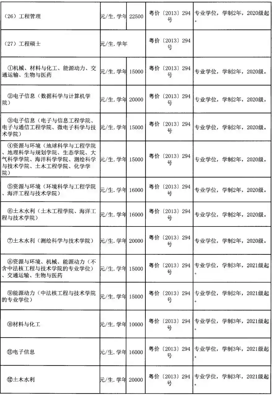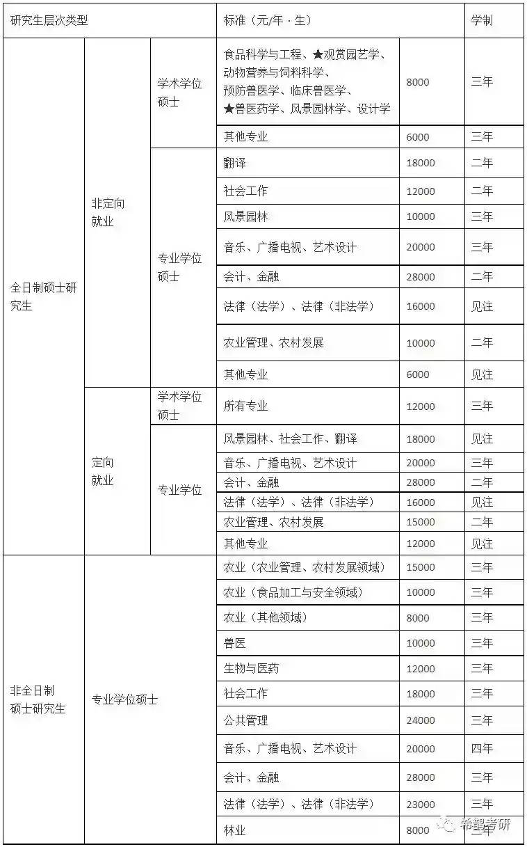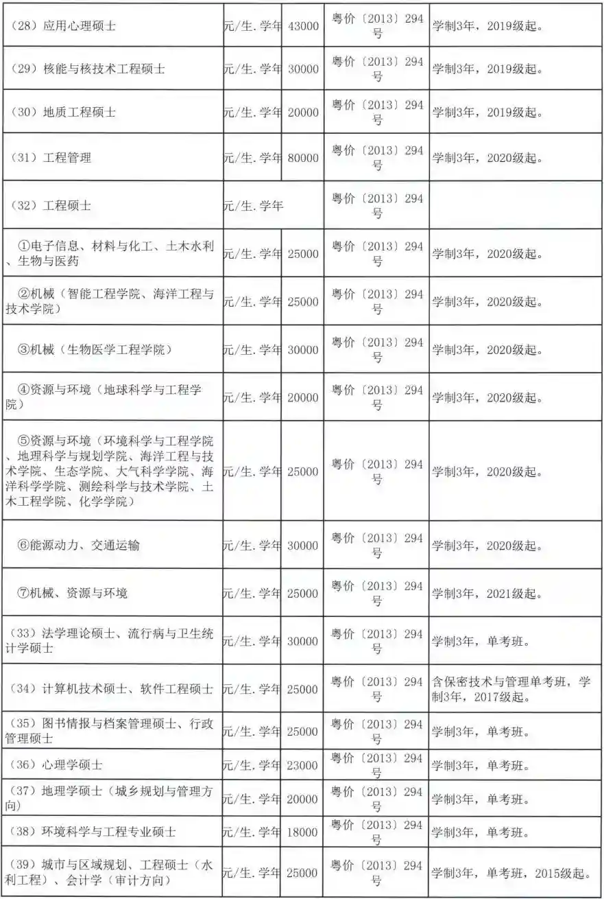 全日制硕士研究生学费收费标准(收费标准以每年上级主管部门审批公布的为准)见下表: