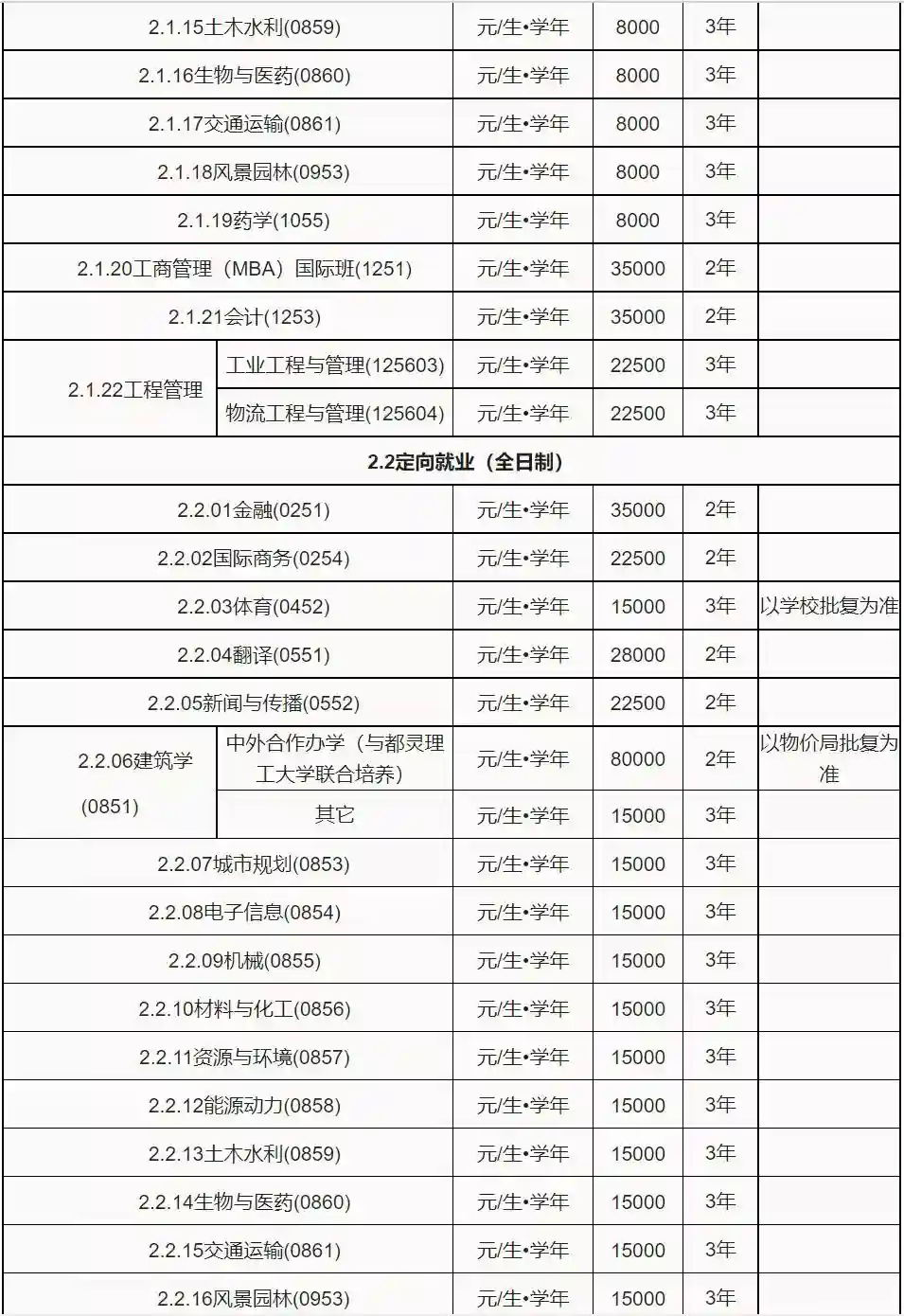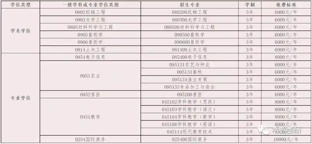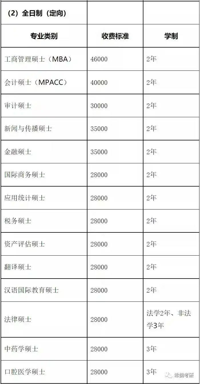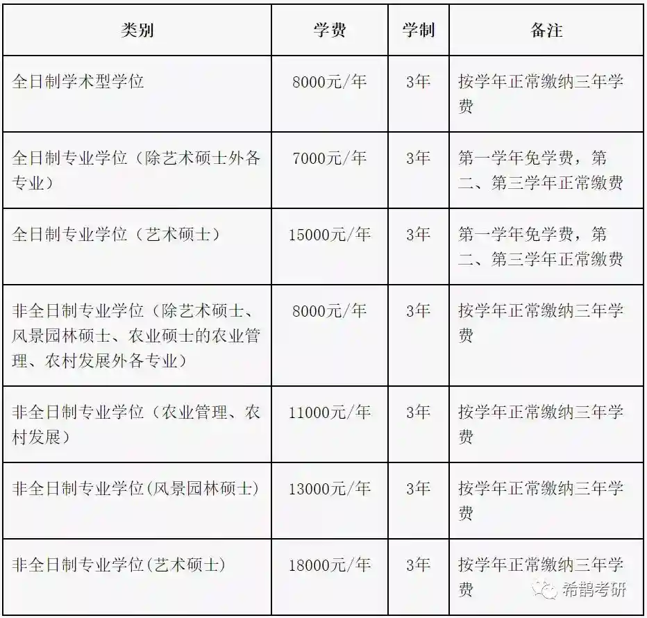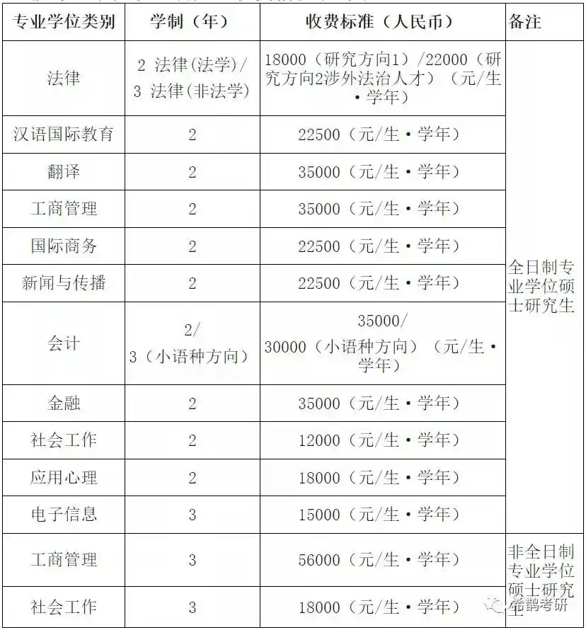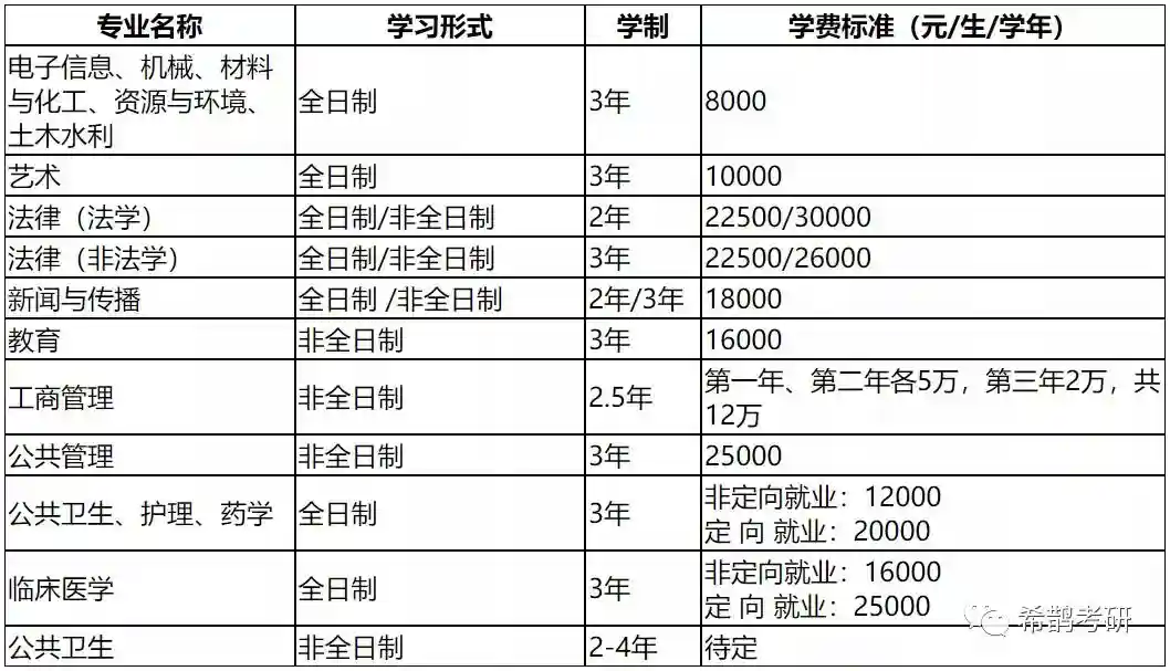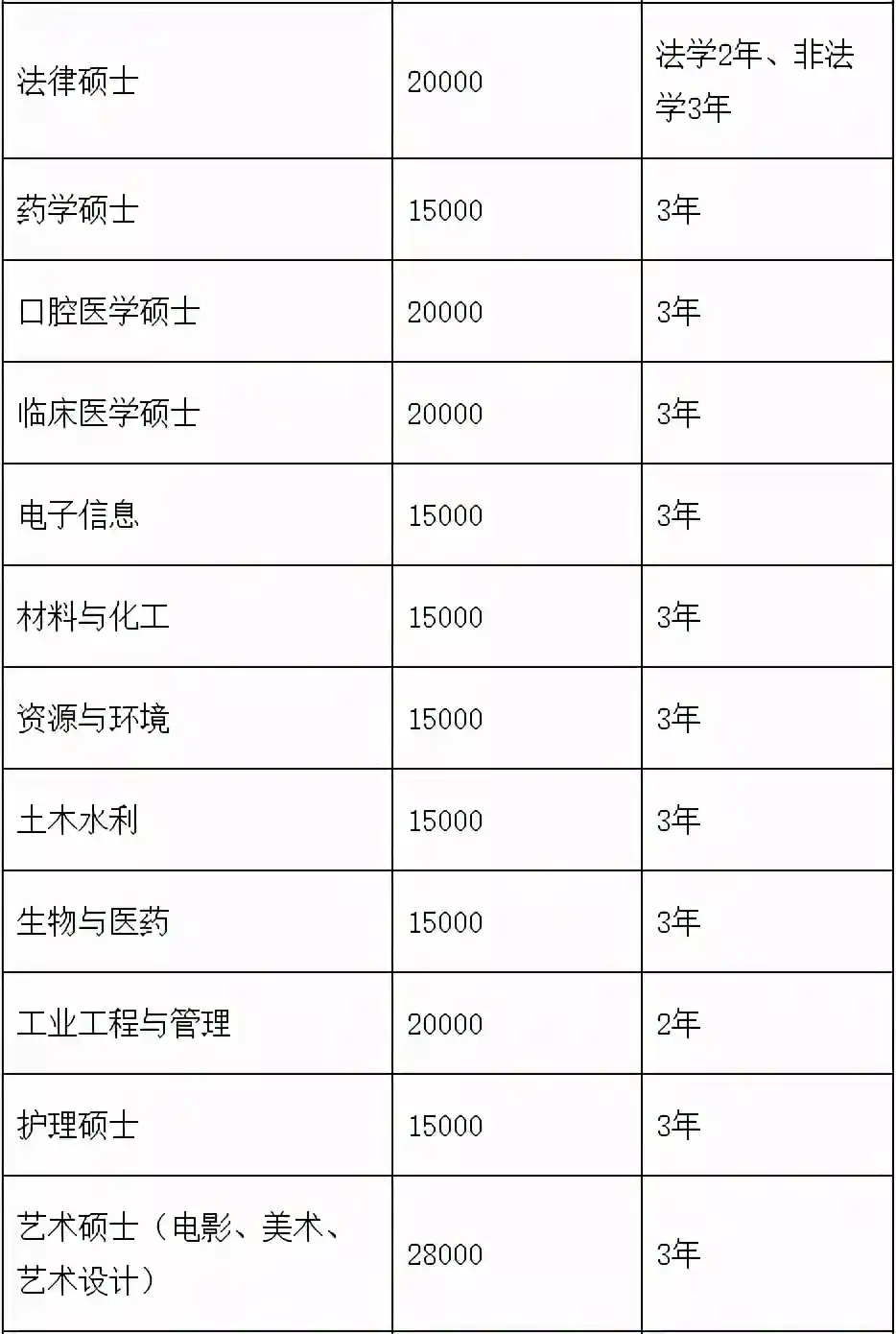 备注:1.学费不包含住宿费。因我校住宿费分为若干档次,学生入学后按实际入住档次收取住宿费;2.各专业研究生培养所在校区以入学时安排的为准。