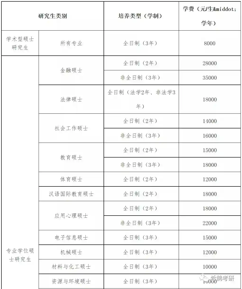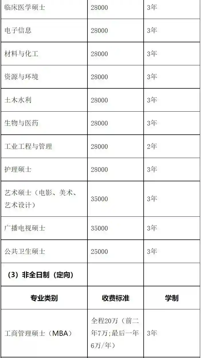(1)专业型硕士:教育硕士10000.00元/生•学年;电子信息硕士8000.00元/生•学年。