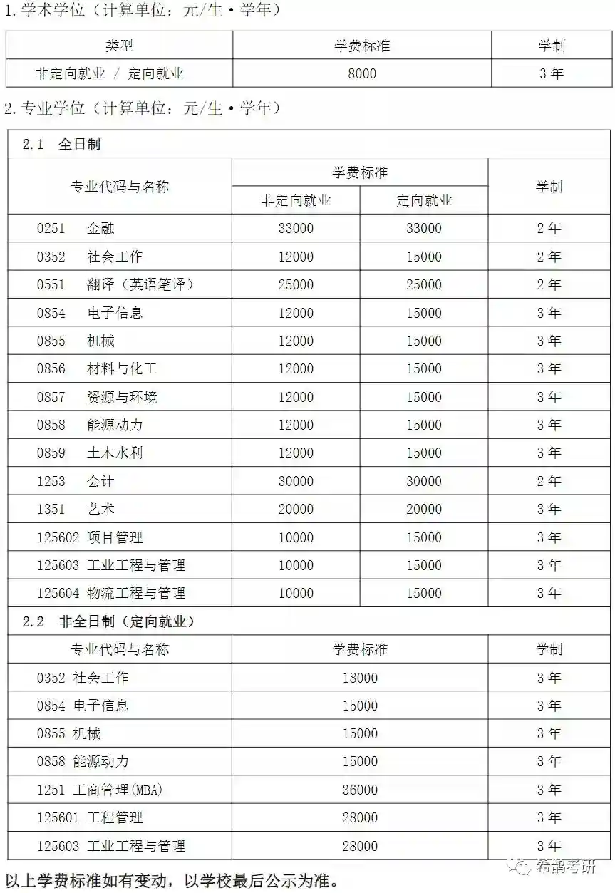 1.非定向就业全日制学术型硕士生8000元/年;定向就业学术型硕士生28000元/年。