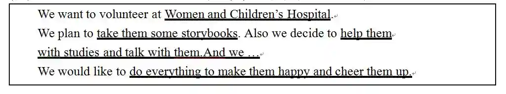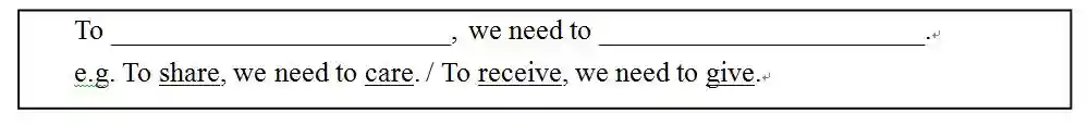活动2:除了志愿活动,学生继续被鼓励使用目标语言(不定式做宾语和状语)来设计志愿者标语,使更多的人加入志愿活动中来。