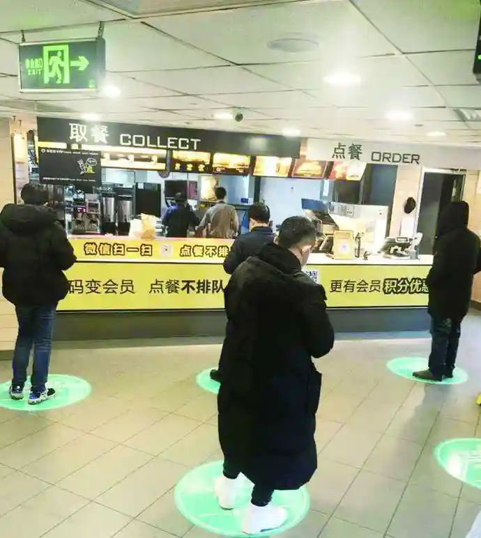 在麦当劳餐厅记者看到,几位点餐和取餐的顾客都自觉地站在“在此候餐”“在此点餐”等醒目粘贴上。餐厅内桌椅彼此之间的距离都在1.5米以上。“我们上周开放的堂食,这两天顾客多了一些。”吉林麦当劳公司事务部总监华帅说。