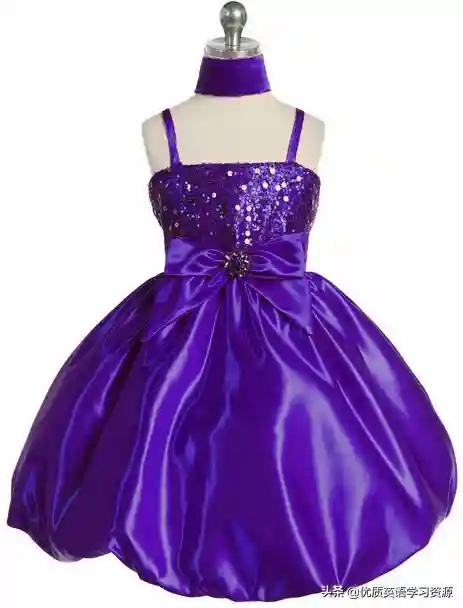完整的句子是:SheiswearingapurpledresswithawhiteT-shirt.她穿着紫色的裙子和白色的t恤。