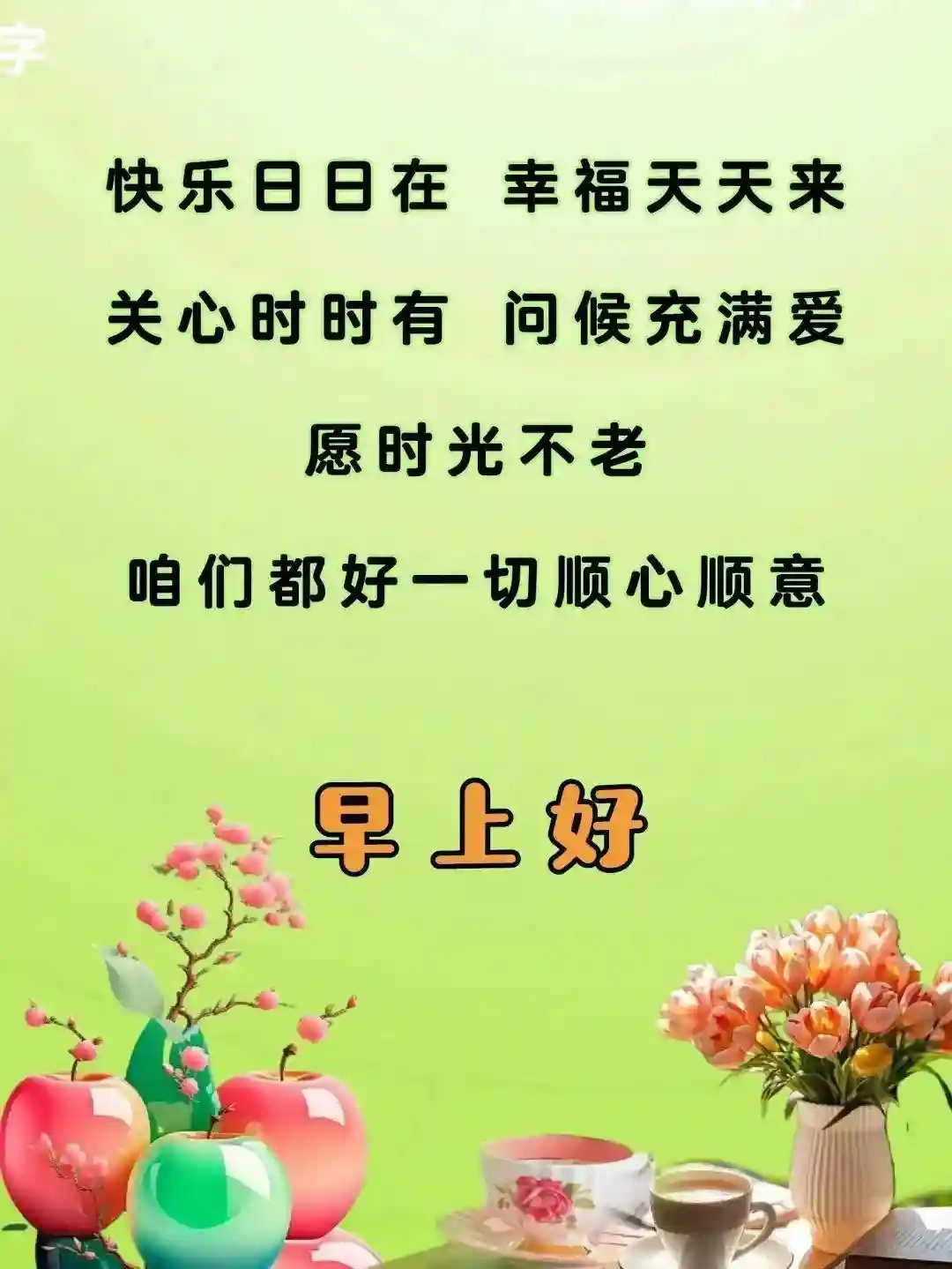 早上好,开心快乐,一切顺利,平安健康。