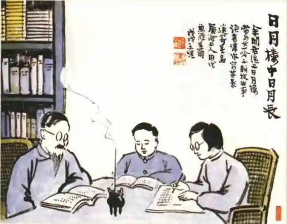 浸润了日月光华,父亲的一支妙笔不仅生出了美丽的花朵,而且结下了丰硕的成果。在日月楼,父亲与我合作译了俄国作家柯罗连科的长篇小说《我的同时代人的故事》一-四卷(人民文学出版社一九五七——一九六四年出版)。后来他又从日文译了夏目漱石、石川啄木的作品(一九五八年由人民文学出版社相继出版),以及世界上最早的长篇小说、日本古典名著《源氏物语》(人民文学出版社出版一九八○——一九八三年)、还写下了《雪舟的生涯与艺术》、《缘缘堂新笔》数十篇、“续笔”数十篇,出版了《听我唱歌难上难》(中国少儿出版社一九五七年)《子恺儿童漫画》(天津少儿出版社一九五九年)、《丰子恺画集》、《护生画集》(上海人民美术出版社出版一九六三年)等等。