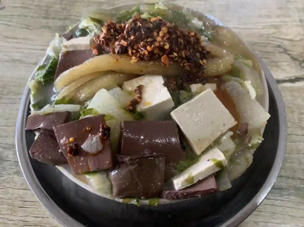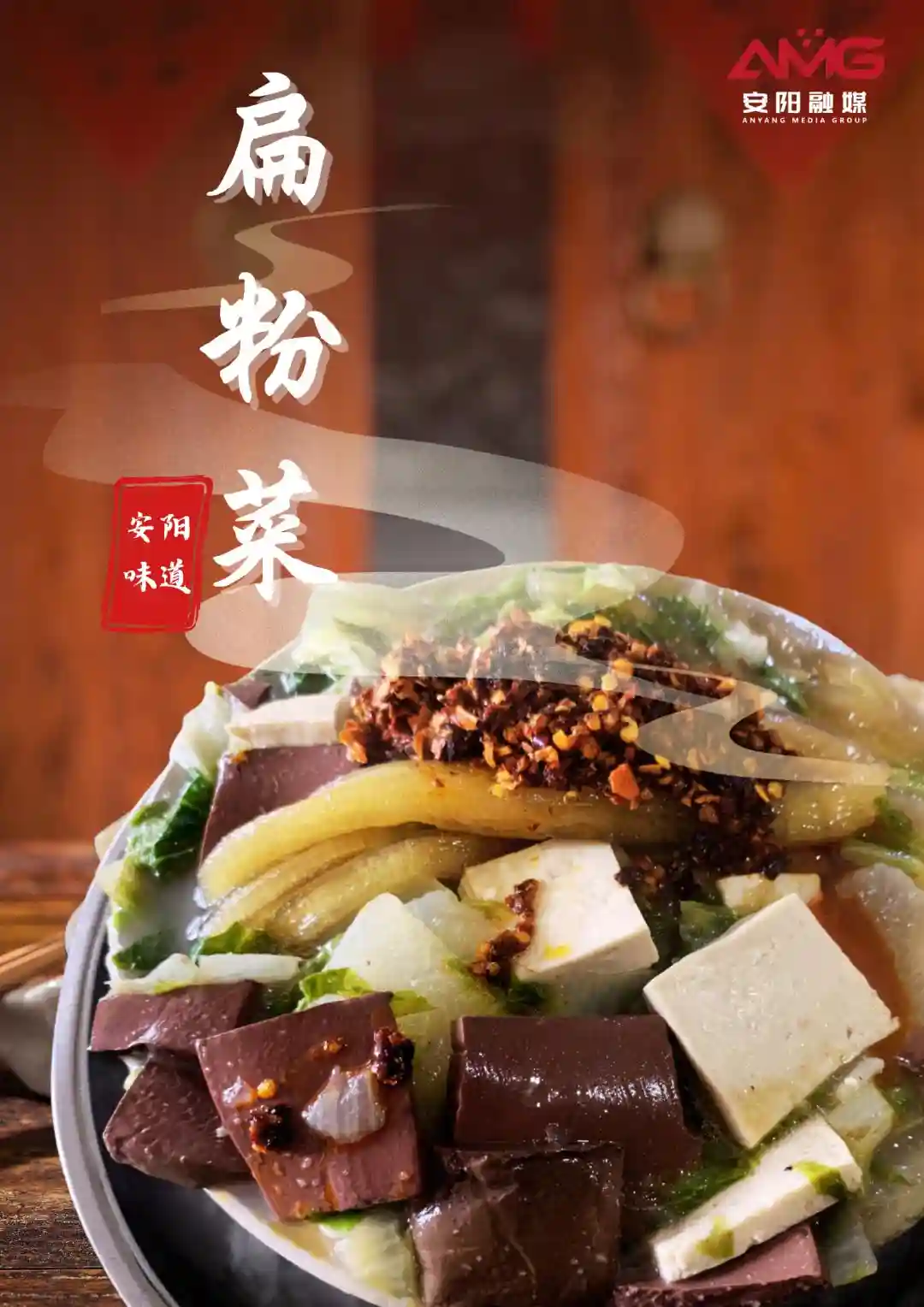 安阳特色传统小吃,以红薯粉条做主料,配以青菜、豆腐、猪血等。扁粉菜的精髓在于辣椒油,辣椒要香而微辣。