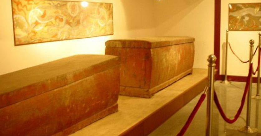 博物馆展出的南宋古墓二人棺木