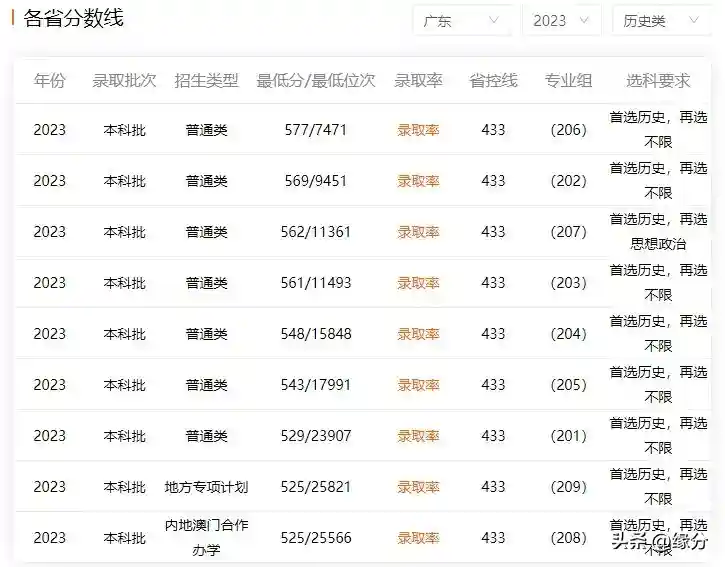 此外,广东外语外贸大学在广东省不同专业组的具体最低录取分数线如下: