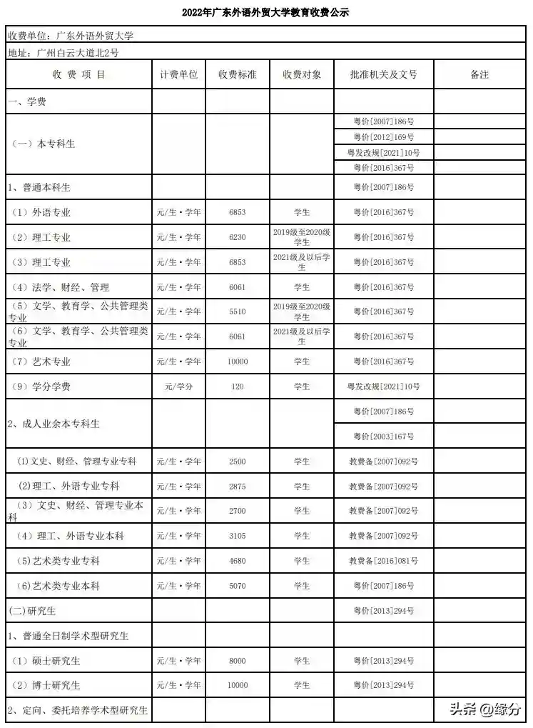 广东外语外贸大学2023年录取分数线及学费标准(建议收藏)