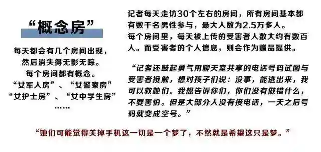 N号房渐渐发展成如女军人房、女警察房、女护士房、女中学生房等传播范围更广、参与者更多、受害者也更多的概念房。
