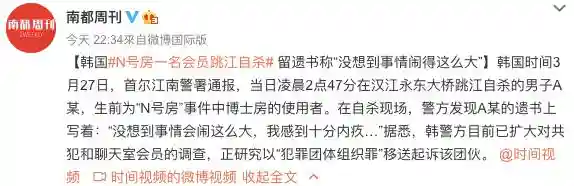 23日韩国总统文在寅下令彻查N号房主谋以及26万会员。