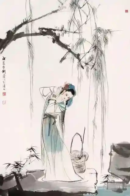 【采采卷耳,不盈顷筐。嗟我怀人,置彼周行】出自《诗经•周南•卷耳》。意思是:采呀采呀采卷耳,半天不满小筐儿。我啊怀念心上人,菜筐丢在大路边。