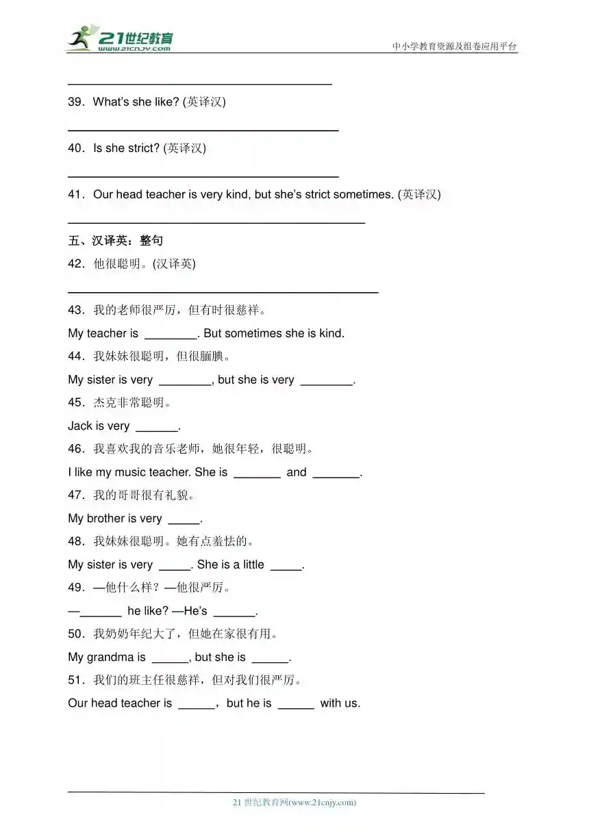 Unit1What’shelike易错题分类汇编-英汉互译(含答案).doc