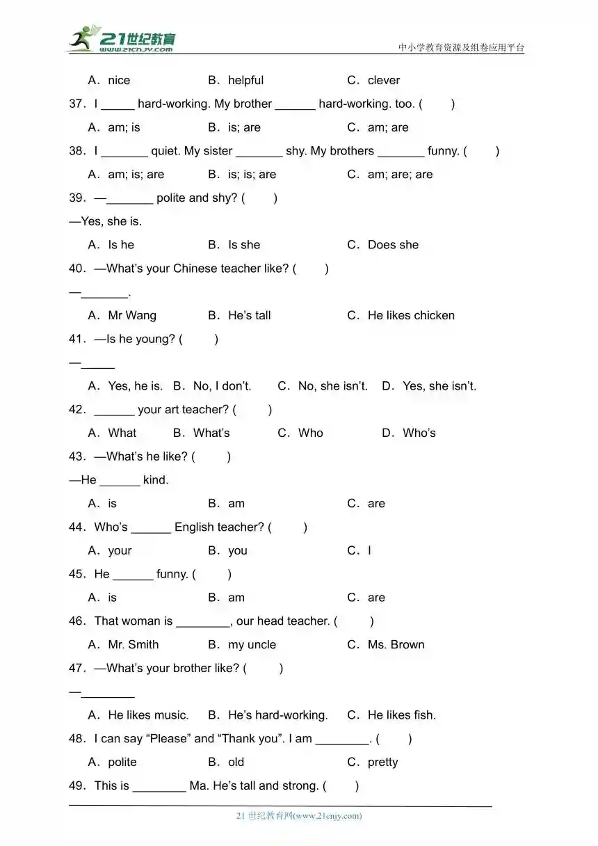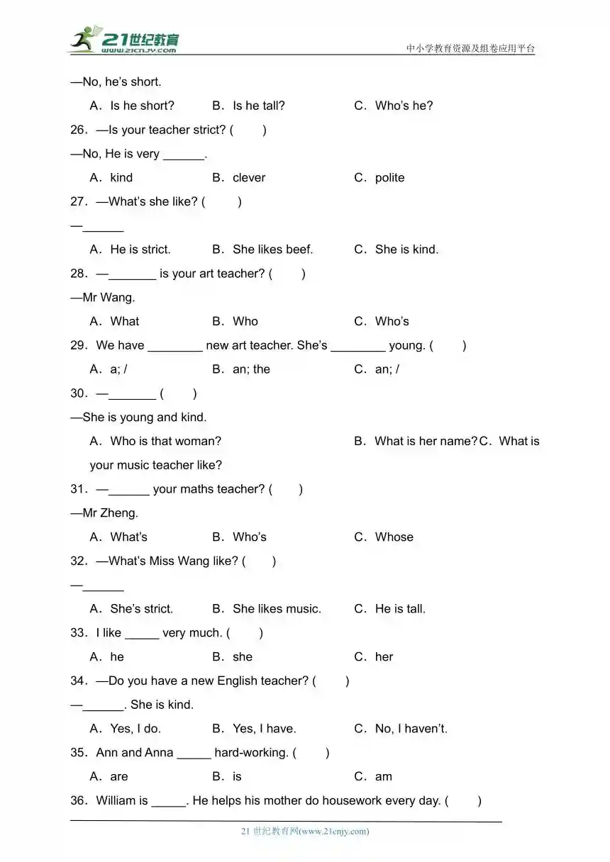 资料预览:Unit1What’shelike?易错题分类汇编-单选题(80题)(含答案).doc