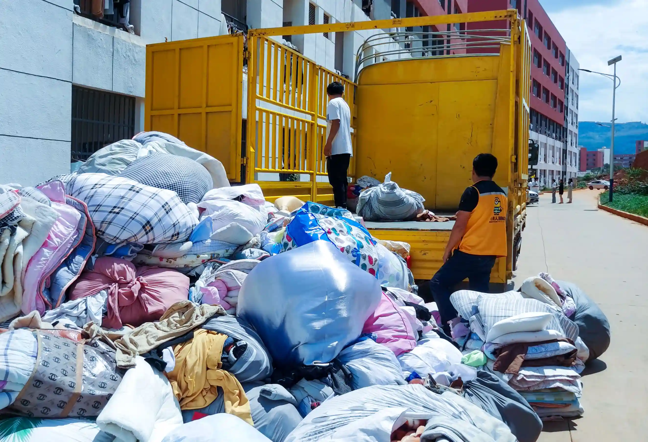 再生:质量差一点的旧衣服,影响二次销售的旧衣服会进行消毒、粉碎,卖给后端生产公司,制作成地毯、隔音棉、拖把、大棚保温材料等等。