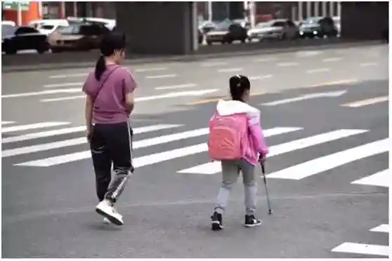 早上七点半,熙熙攘攘的哈尔滨街头,一个盲童女孩手持盲杖,敲敲打打,小心探路,一步步前行。
