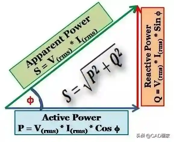 KW、KVar和KVA之间的关系可以用一个功率三角形来表示,它是一个直角三角形,两直角边分别为Q与P,斜边为S,S与P之间的夹角Ф为功率因数角,它反映了该交流电路中电压与电流之间的相位差(角)。