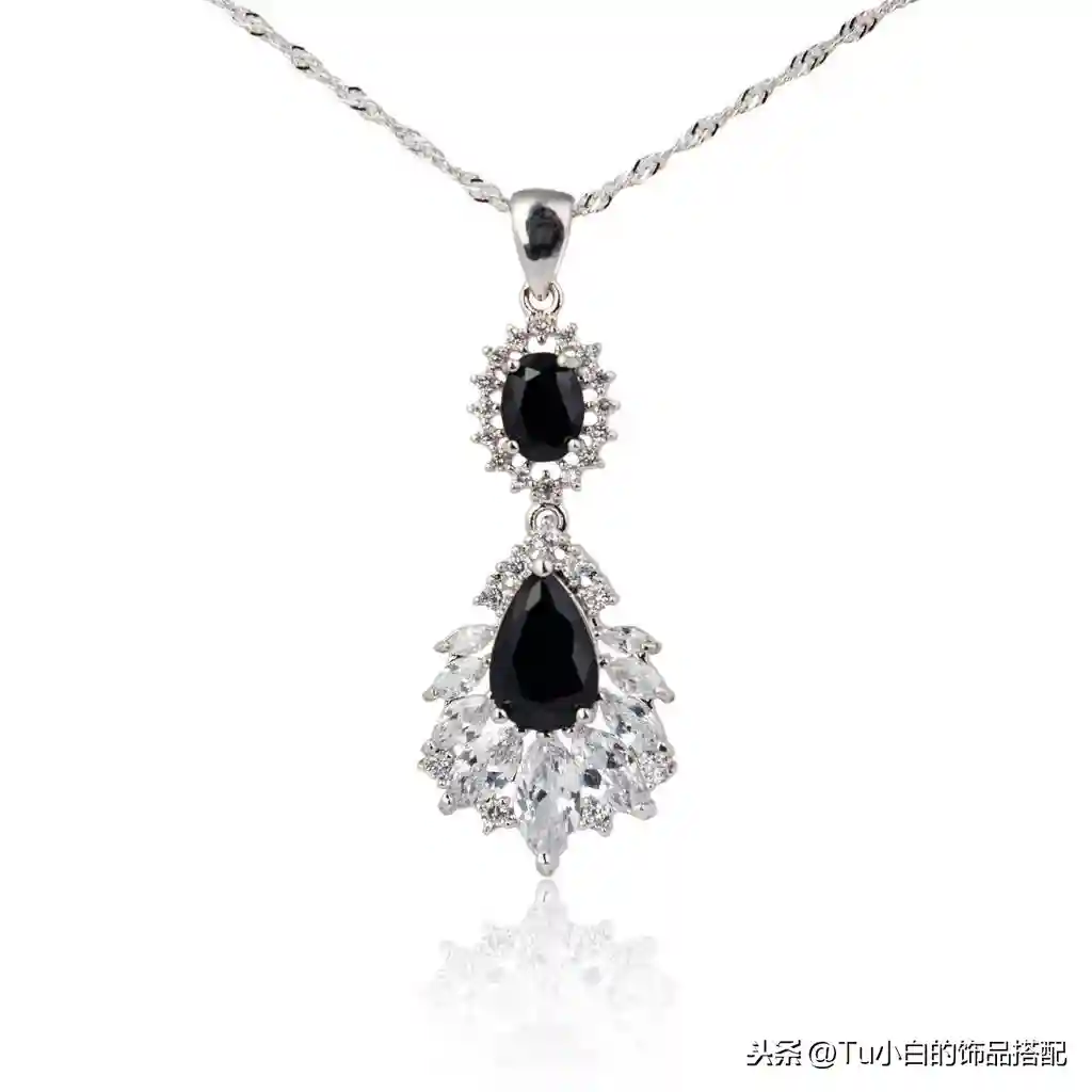 黑色白色一个孤立的尖晶石钻石吊坠