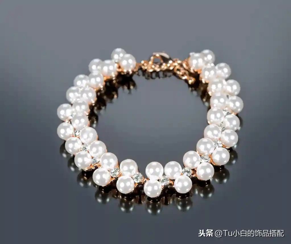 灰色的背景上的珍珠的手镯
