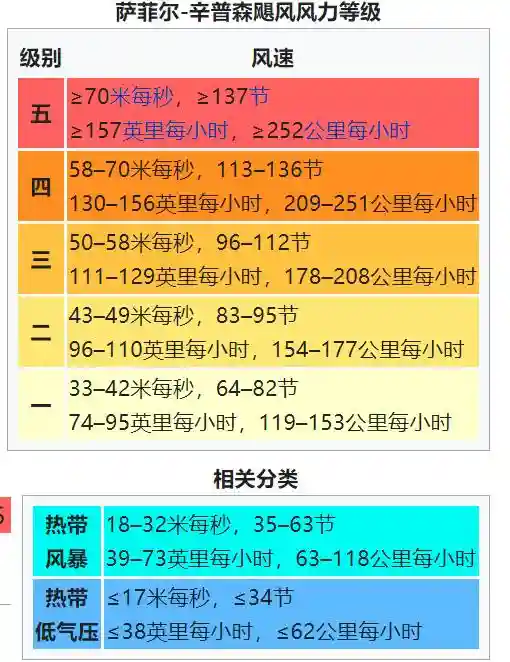 如果从历史平均的统计数据上看,其实北大西洋的飓风无论是强度还是数量上,都远不如西北太平洋。西北太平洋每年平均生成22-23个热带风暴,而北大西洋每年只能生成10-11个,不到西北太平洋的一半。美国对飓风的强度等级是按照一分钟持续风速划分的,称为“萨菲尔-辛普森飓风等级”,风速单位为“英里每小时”而不是常用的“公里每小时”或“米每秒”。飓风等级分为热带低压、热带风暴、1-5级飓风一共七个级别,其中3级或以上的飓风又称为“主飓风(MajorHurricane)”,强度大约对应我国的超强台风级。因为风速标准不同,世界气象组织建议值是按照10分钟平均风速,美国人使用的标准却是1分钟平均,所以得到的风速值通常要大一些。美国也有监测台风的气象机构,位于关岛,这里发布的台风风速和强度就沿用了飓风等级。根据关岛的数据,西北太平洋上最强的一批超强台风(等价于5级飓风强度,风速达到157英里每小时),其数量远多于北大西洋。