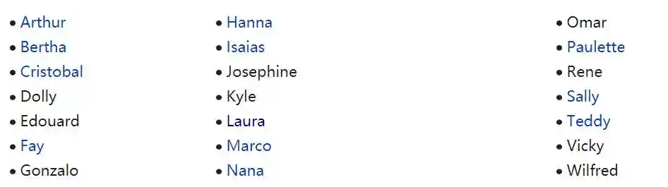 今年的飓风命名表