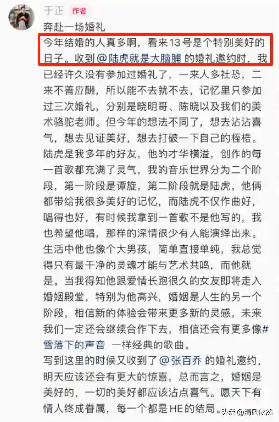 “祝福陆虎和陈曌旭新婚快乐百年好合!”