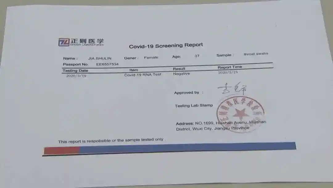全省首份英文版新冠病毒阴性检测报告!在无锡“出炉”