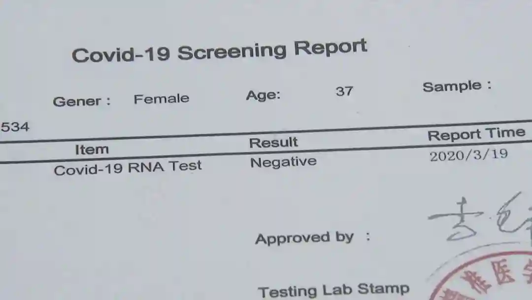 这也是全省第一份英文版新冠病毒阴性检测报告。