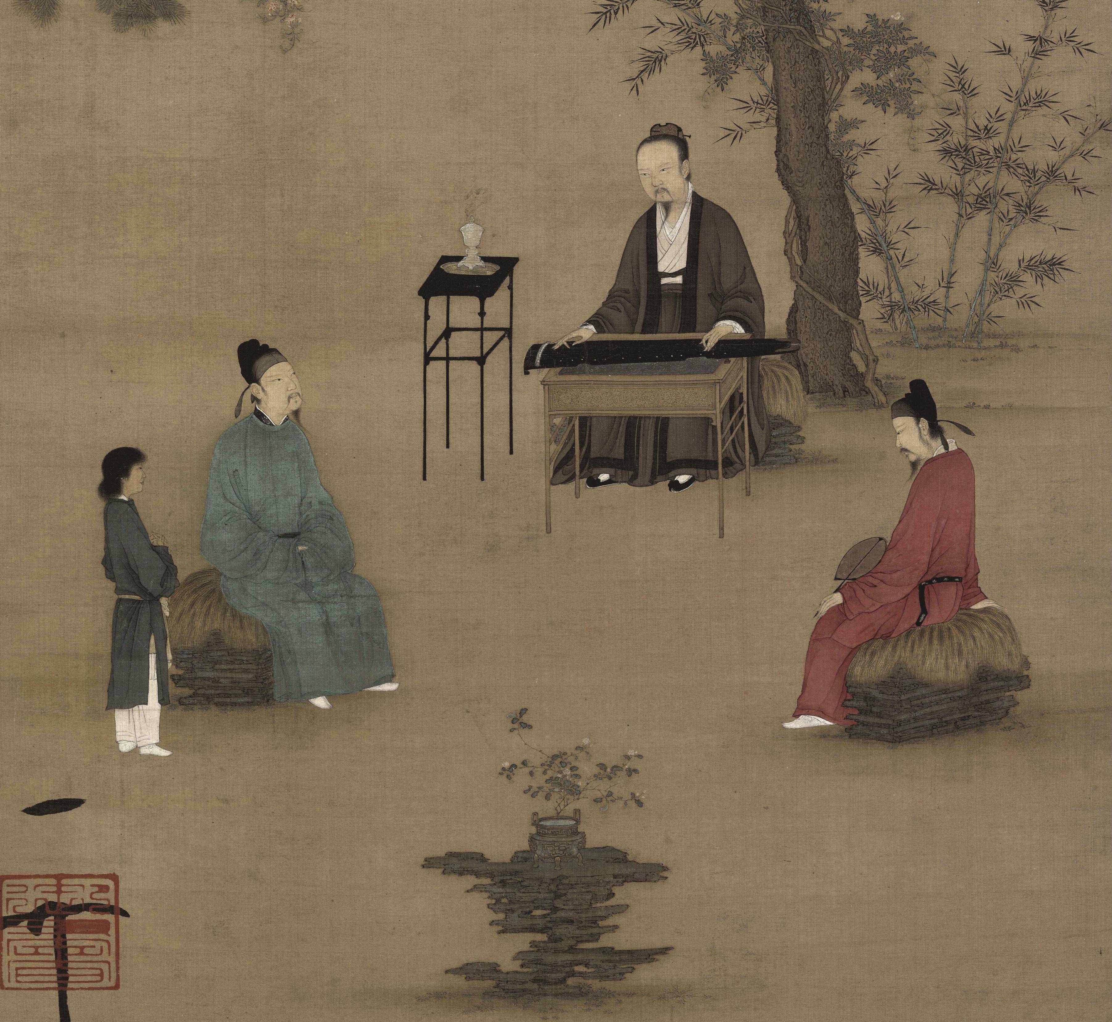 红色官服也是古代绘画中喜爱表现的,如宋画《听琴图》中人物和下文中介绍的《韩熙载夜宴图》中着红衣的、风华正茂的郎粲。
