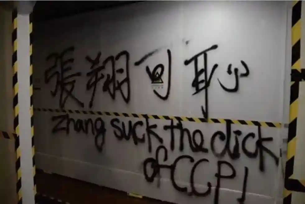 香港大学校内批评校长的标语(图源:港媒)