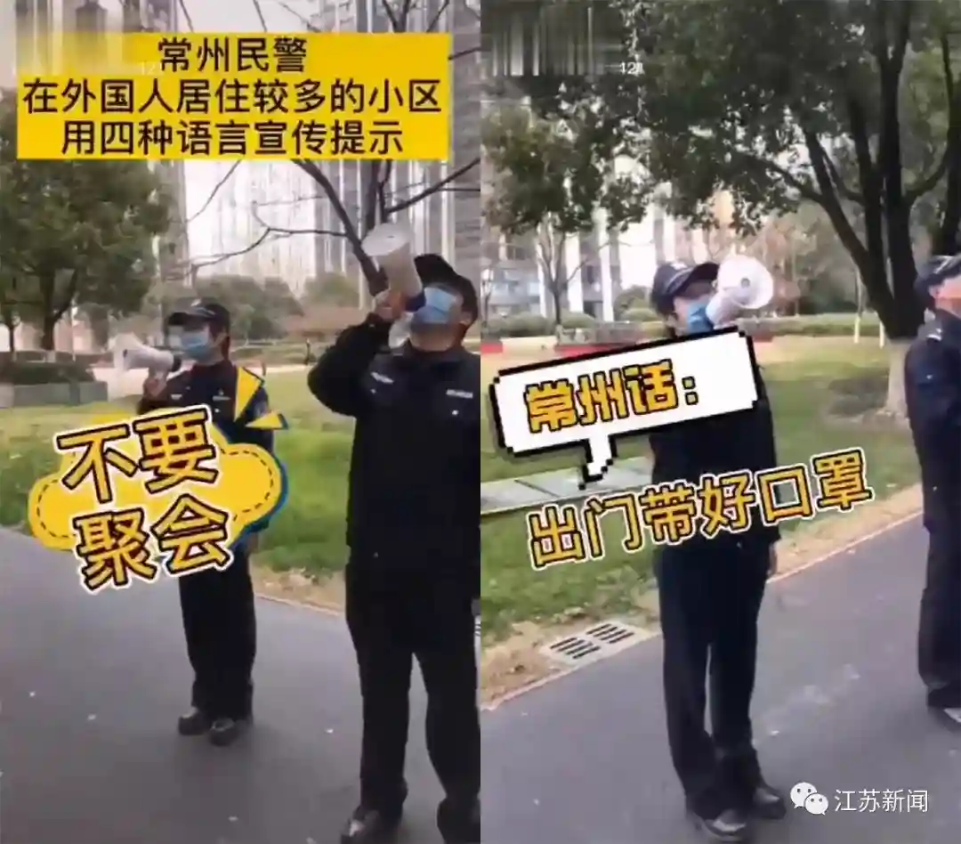 简介近日江苏常州民警在某小区进行疫情防控宣传时竟使用了多种语言进行喊话↓↓↓英语、日语、普通话、方言民警小区喊话技能开挂一开始两位民警先是用普通话和常州话劝诫大家不要随意外出出门记得戴好口罩防护接着两位民警竟然使出大招分别用英文和日语进行了喊话网友:这样的喊话有趣又实用!据了解这是因为该小区居住的外国人...