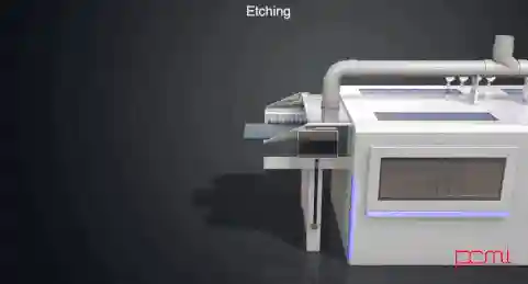 蚀刻是将材料使用化学反应或物理撞击作用而移除的技术。通常所指蚀刻也称光化学蚀刻,指通过曝光制版、显影后,将要蚀刻区域的保护膜去除,在蚀刻时接触化学溶液,达到溶解腐蚀的作用,形成凹凸或者镂空成型的效果。