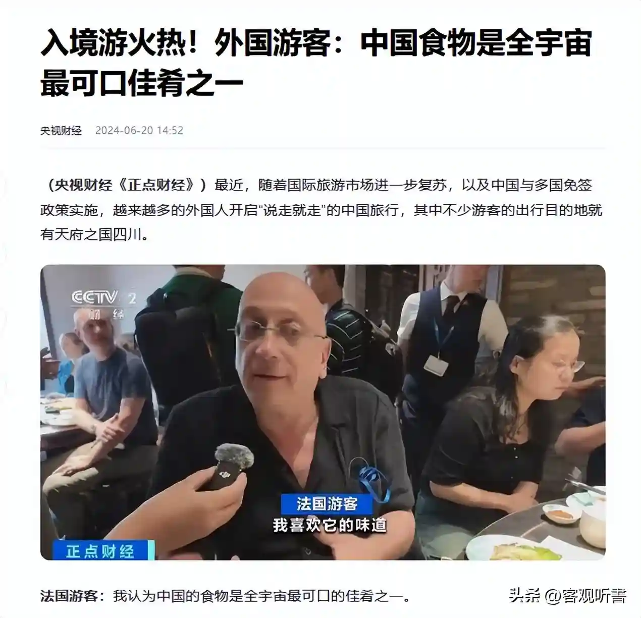 中国的美食也是让外国人喜欢来中国的一个原因,从此也能看出中国的优势。