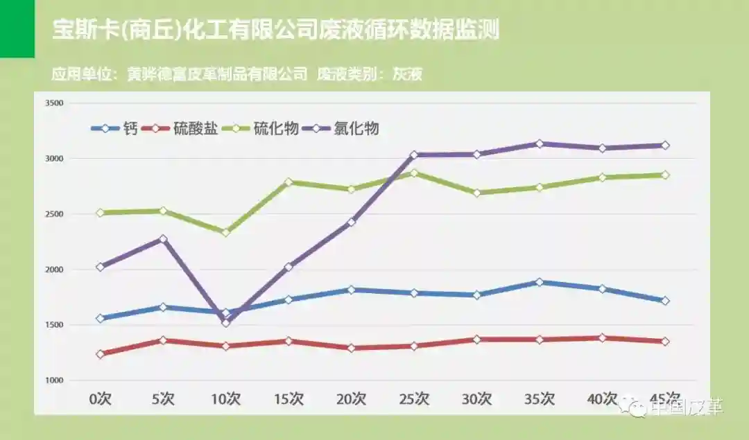 目前该灰液循环系统先后在国内部分制革企业进行了规模化大生产应用。为进一步研究制革灰液循环技术在制革企业实际大生产中的应用效果,宝斯卡(商丘)化工有限公司与部分客户联合开展了循环废液组分数据采集工作,给不断完善循环技术提供了可靠的理论依据。