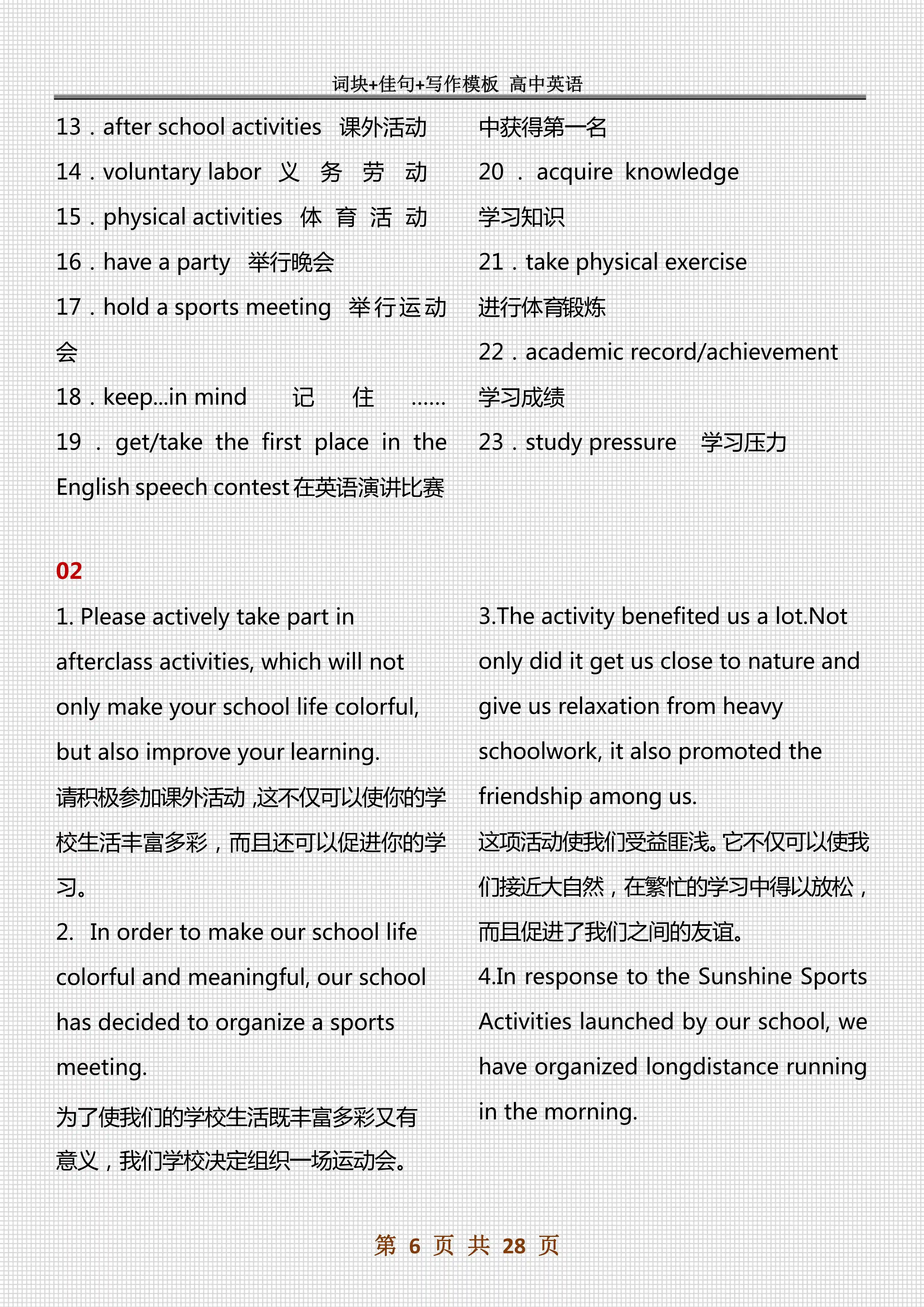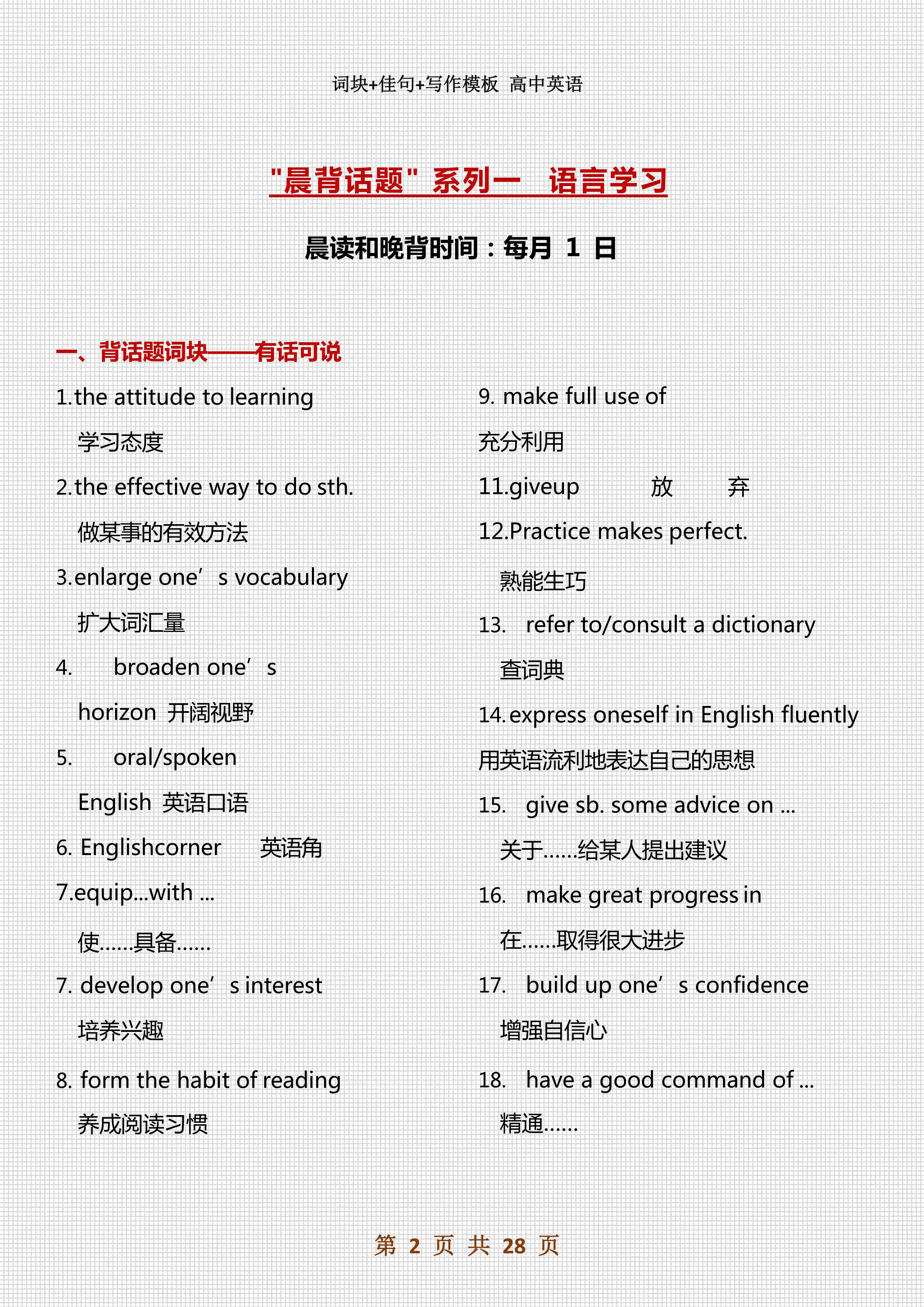 今天学姐整理了一份高中英语30天晨读晚背知识点,建议人手一份