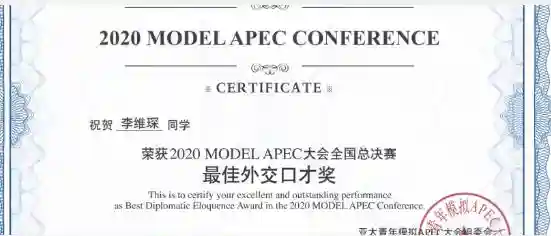 此外,她凭借优秀的英语水平斩获过多个奖项,如2020年全国大学生英语竞赛C类一等奖、2020年全国大学生英语翻译大赛二等奖、2020MODELAPEC大会全国总决赛最佳外交口才奖等等。