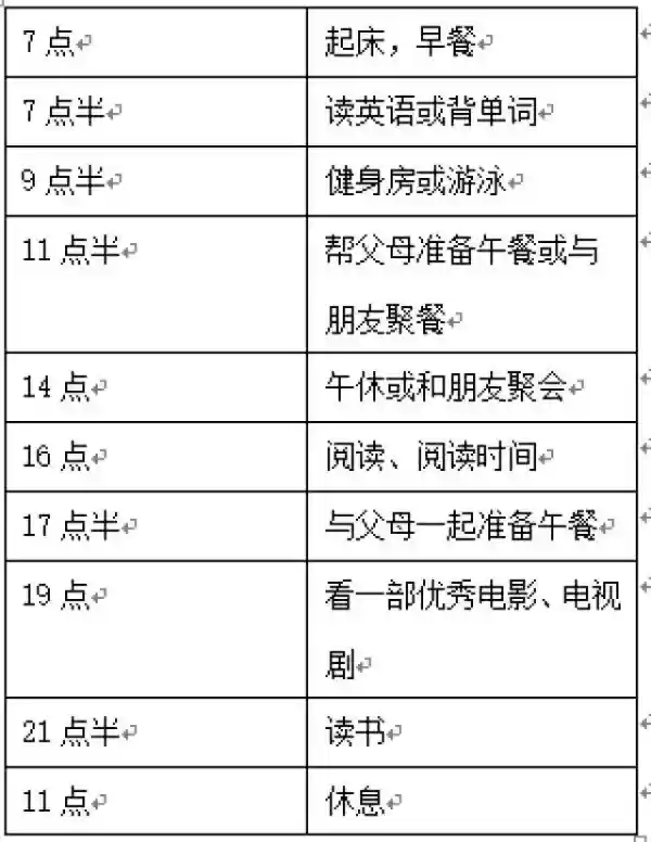 为了以充实的状态度过假期,不少人都有制定寒假计划的习惯。比如,一位同学寒假期间一天的安排是这样的: